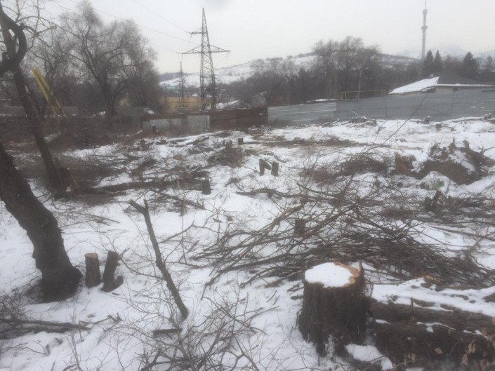 Алматинцы возмущены массовой вырубкой деревьев возле тубдиспансера
