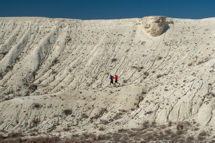 Самый высокогорный забег был в Жамбылской области, в ущелье Мерке, на уровне в 2627 метров, забег ниже уровня моря, от минус 10 до минус 50 метров, случился на Каспийском побережье. Количество авиарейсов – 42, каждый этап занимал от четырех до шести дней, домашняя работа над маршрутом каждого этапа занимала до двух недель. В среднем бег на каждом этапе длился около четырех часов.