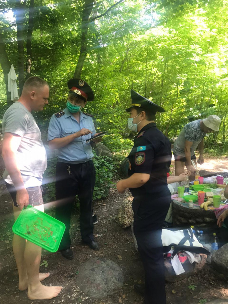 Сообщается, что 26 мая во время рейда вдоль русла реки Малая Алматинка и ущелья Бутаковка были обнаружены трое мужчин. Они развели костер на территории национального парка Медео для приготовления шашлыка. Всех в итоге наказали по статье 505 КоАП "Нарушение правил благоустройства территорий городов и населенных пунктов, а также разрушение объектов инфраструктуры, уничтожение и повреждение зеленых насаждений города и населенных пунктов".