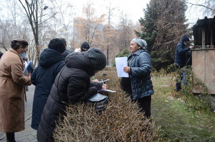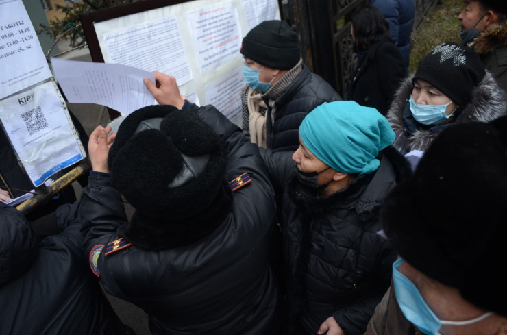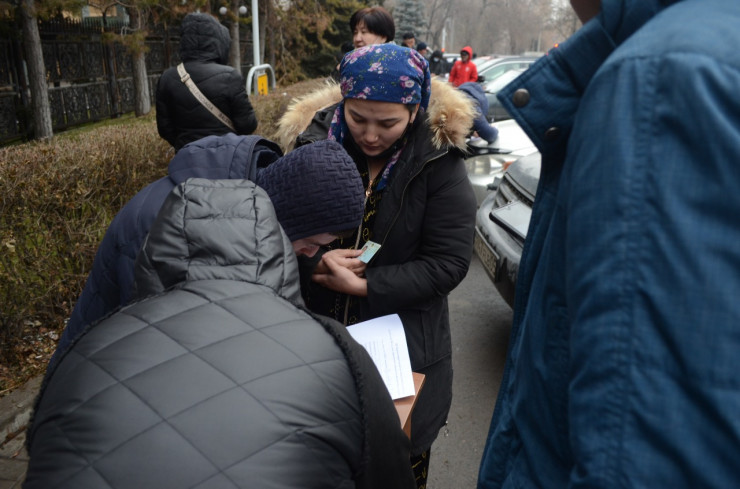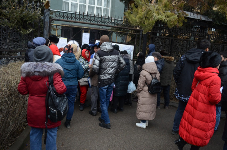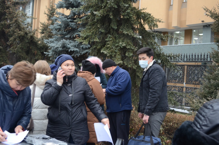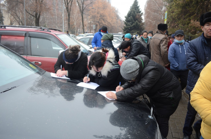 Корреспондент Tengrinews.kz находится на месте событий. На данный момент возле здания дежурят полицейские. Сообщается, что написавшие заявления горожане передают бумагу в агентство и уходят. Однако новые люди продолжают прибывать к зданию и тоже пишут заявления.