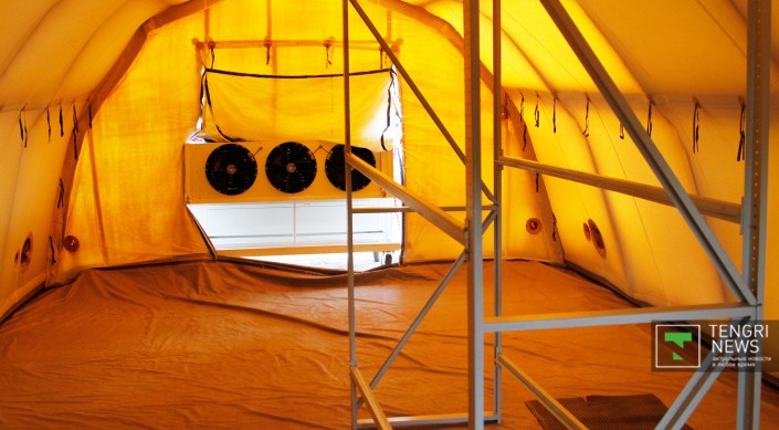 Комплекс представляет собой три палатки, в которых размещаются помещения для складирования трупов, проведения судмедэкспертиз и для работы экспертов по оформлению документации. Его можно развернуть в любом регионе Казахстана.