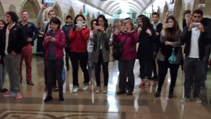 Необычный перформанс устроили в метро Алматы американская балетная труппа Island Moving Company и казахстанский театр современного танца Samruk. Молодые артисты продемонстрировали пассажирам метрополитена красивые танцевальные движения. Видеозапись флешмоба появилась на странице U.S. Consulate Almaty в Facebook.
