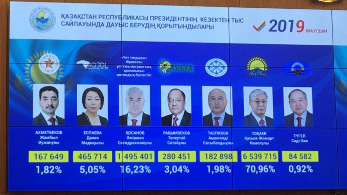 ОСК дерегінше, "Ұлт тағдыры" қозғалысы атынан сайлауға түскен Әміржан Қосанов 16,2 пайыз дауыс алған. Оған 1,4 миллион адам дауыс берген. Алғашқы әйел кандидат, "Ақ жол" партиясынан сайлауға түскен Дания Еспаева - 5,3 пайыз (478 мың адам), "Ауыл" кандидаты Төлеутай Рахымбеков - 3,2 пайыз (294 271 дауыс), "Қазақстан кәсіподақтар федерациясы" кандидаты Амангелді Таспихов - 2,7 пайыз (190 304 дауыс), "Қазақстанның халық коммунистік партиясы" кандидаты Жамбыл Ахметбеков 1,82 пайыз (167 249 дауыс) алған.