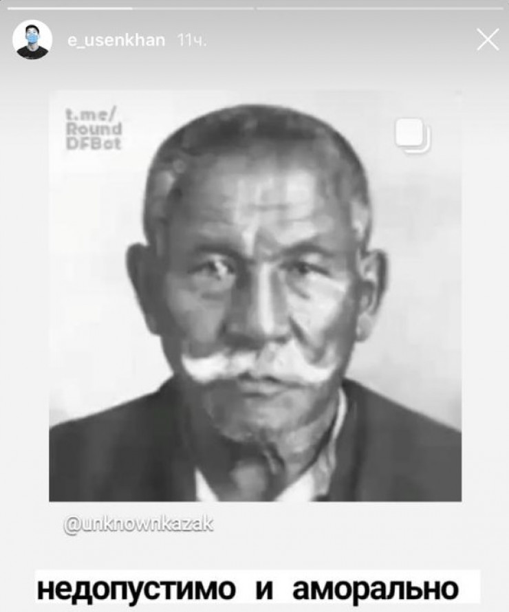 Одним из первых в Казнете видео с использованием фото исторической личности заметил автор Instagram-страницы "Неизвестный Казахстан" Диас Камериданов.