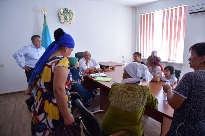 Жителей в акимате приняли Аскар Мамин и Умирзак Шукеев.