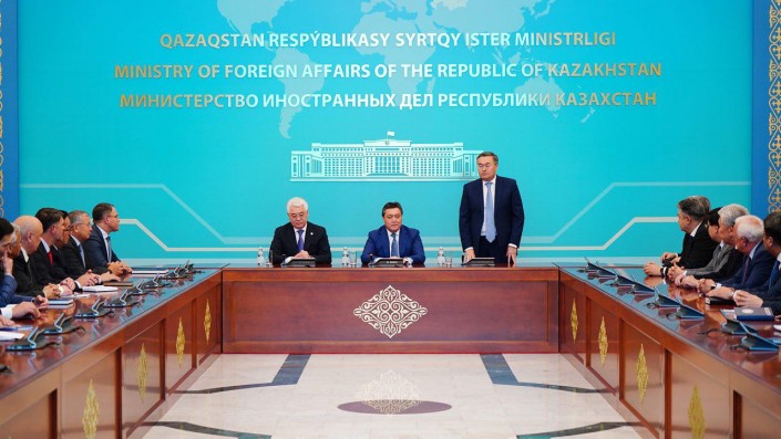 На встрече с руководящим составом МИД глава правительства поблагодарил Бейбута Атамкулова за работу на посту министра иностранных дел, пожелав ему успехов в качестве главы МИИР, а его преемнику Мухтару Тлеуберди - плодотворной работы в должности министра иностранных дел.