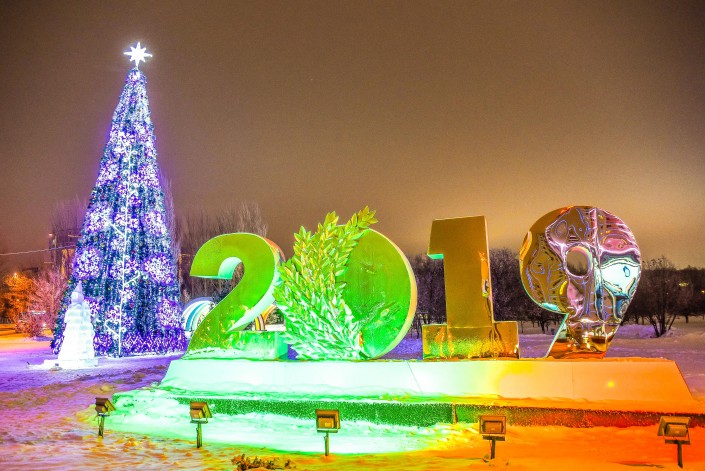 Традиционными украшениями стали объемные цифры предстоящего года. Их можно наблюдать на постаментах и в светящихся коридорах. Они установлены перед многими достопримечательностями столицы.