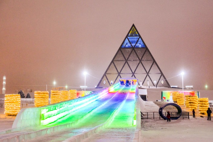 Но самыми любимыми у жителей и гостей столицы остаются набережная реки Есиль и ледяные горки, катки. Здесь маленьких гостей и взрослых встречают ледяные скульптуры, подсвеченные разноцветными огоньками, маленькие и большие горки с прокатом тюбингов.