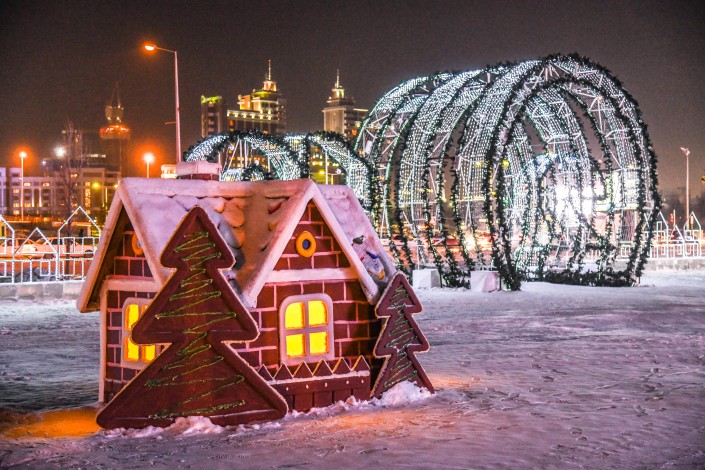 Городская площадь, Ботанический сад, территория EXPO-2017, парк "Жетысу", территория у торгово-развлекательного центра "Хан Шатыр", Президентский парк, площадь у монумента "Қазақ Елі", парк "Ататюрк", набережная реки Есиль, парк "Жеруйық", набережная реки Акбулак и территория у спортивного комплекса "Алатау" преобразились благодаря объемным декорациям, елкам, оригинальным пряничным домикам.
