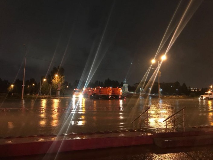 "Коммунальные службы Астаны в усиленном режиме ликвидируют последствия прошедшего ливня. Осадков выпало намного больше нормы, но, как обещают коммунальные службы, последствия сильного ливня будут ликвидированы в течение двух часов при условии отсутствия сильных осадков. Просим жителей города с пониманием отнестись к технике на дорогах и заранее планировать свои маршруты", - сообщила пресс-секретарь акима Астаны Эльвира Жургенбаева.