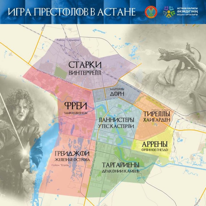 Астанчан "поделили" на Старков, Таргариенов и Ланнистеров Иллюстрация yvision.kz