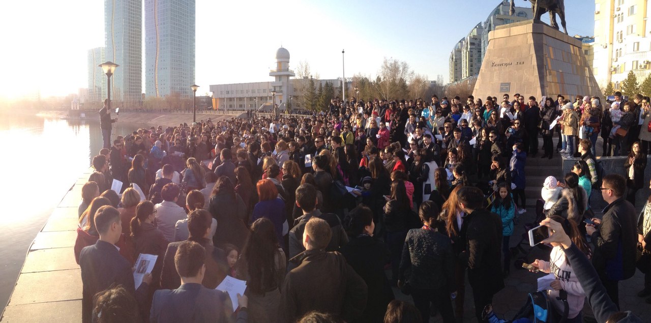 Астанчане исполнили песни Батырхана Шукенова на Набережной