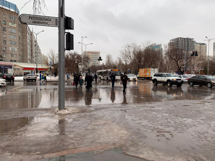 По данным "Казгидромета", 26-27 февраля ожидается гололед. В ДЧС Нур-Султана посоветовали быть бдительными, следить за информацией об изменениях погодных условий и введенных ограничениях. Также рекомендуется держаться подальше от столбов, деревьев, рекламных щитов, опор ЛЭП и проводов.