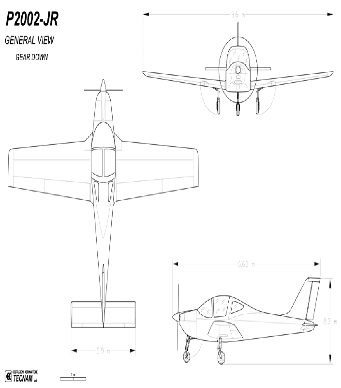 Дальность полета составляет от 589 до 693 морских миль. Максимальная скорость - от 230 до 250 километров в час. Расход топлива - 17 литров в час на всех модификациях. Может также использоваться автомобильное топливо. Размах крыльев составляет 8,9 метра. Длина 6,63 метра. У модификации P2002-JR максимальная взлетная масса достигает 350 килограммов. Полезная нагрузка - 250. Практический потолок 4572 метра.