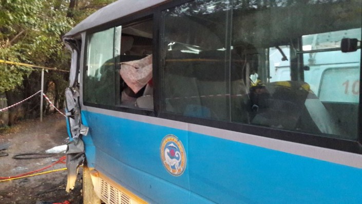 На данный момент на месте работают сотрудники службы спасения, которые извлекают из автобуса тело погибшего.