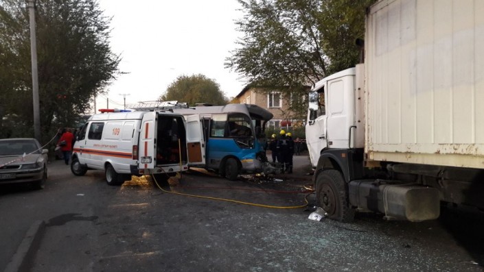 Как сообщается, ДТП произошло по улице Вокзальной. Автобус 104-го маршрута следовал в южном направлении. Со слов очевидцев, автобус маршрута № 104 выехал на встречную полосу и совершил лобовое столкновение с грузовой автомашиной МАЗ.
