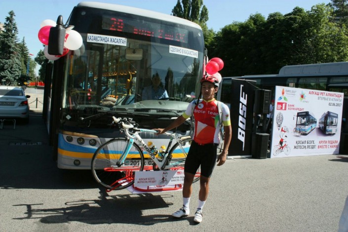 Автобусы с велосипедными креплениями запустили в Алматы