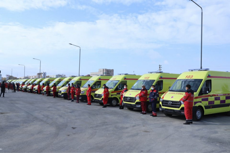 Сегодня аким Мангистауской области Серикбай Трумов вручил фельдшерам ключи от 20 специализированных машин марки Hyundai 350. 13 из них будут курсировать по дорогам Актау, 5 будут переданы на баланс Мунайлинского района и два отправятся в службу санавиации. Каждая машина как палата, в которой имеется все необходимое, чтобы обеспечить качественную первую помощь.
