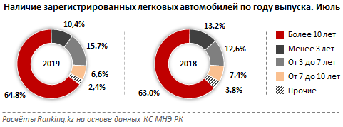 Аналитики портала Ranking.kz выяснили, что автопарк страны стареет: 65 процентов авто в Казахстане старше 10 лет, передает Tengrinews.kz.