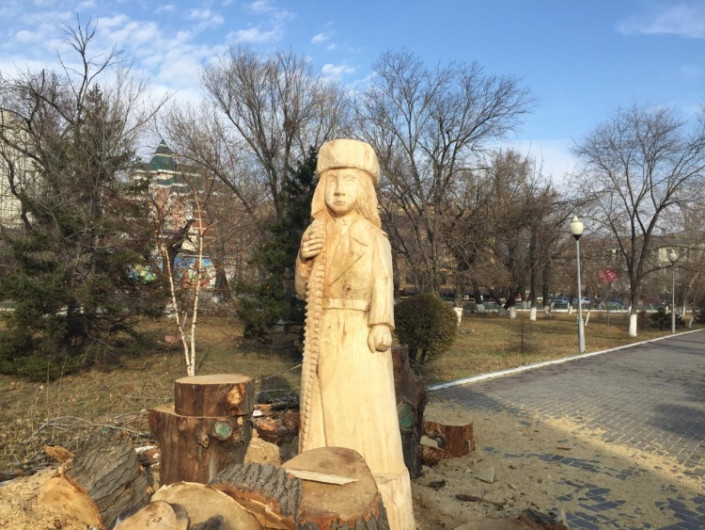 Деревянная скульптура девушки-бойца, которую установили в Семее, вызвала резонанс в соцсетях, передает Tengrinews.kz.