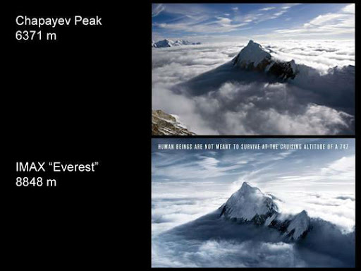 Автор снимка с удивлением обнаружил этот факт. На фотографии изображен пик Чапаева. Этот снимок Зырянов сделал в 2010 году с пика Хан-Тенгри. Затем он разместил фотографию на международном фотостоке. Обычная стоимость кадра на фотобанке колеблется в районе 30 центов, однако эта фотография была продана несколько раз. Однажды Зырянов получил за свою работу 62,50 доллара. Оказалось, что после этот снимок использовали в качестве постера к фильму "Эверест"...