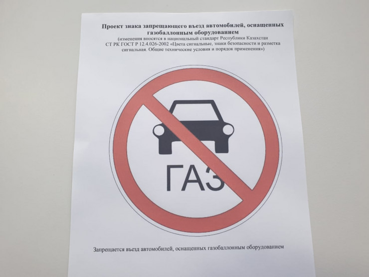 "Екі белгінің эскизі дайындалды. Біріншісі, көліктің алдынғы терезесіне жабыстырылуы тиіс. Белгі көліктің газбен жүретінін білдіреді. Бұл ұсыныс әкімшілік полиция комитетіне жіберілді. Енді жол қозғалысы ережесіне өзгеріс пен толықтыру енгізу мәселесі қаралады. Келесі мәселе тыйым салу белгісіне қатысты. Ол паркинтің кіреберісіне қойылады. Бүгінде біз техникалық реттеу және метрология комитетімен бірге жұмыс істеп жатырмыз", - деді Владимир Беккер.