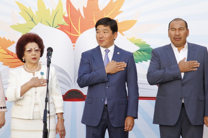 Аким Алматы Бауыржан Байбек посетил линейку, посвященную Дню знаний в гимназии № 159 имени Алтынсарина, передает корреспондент Tengrinews.kz. Он поздравил собравшихся учеников, их родителей и учителей с началом нового учебного года.