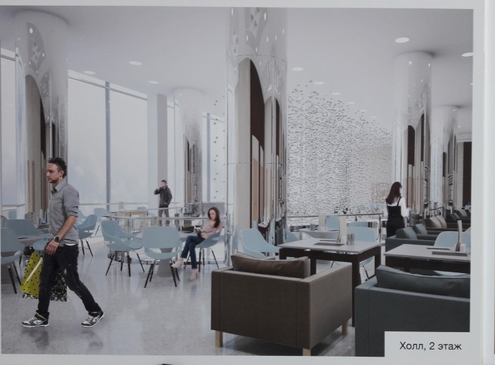 В многофункциональном комплексе будут размещены кофейни, рестораны, конференц-залы и многое другое для досуга гостей. Пока все задумки архитекторов воплощены лишь на эскизах.