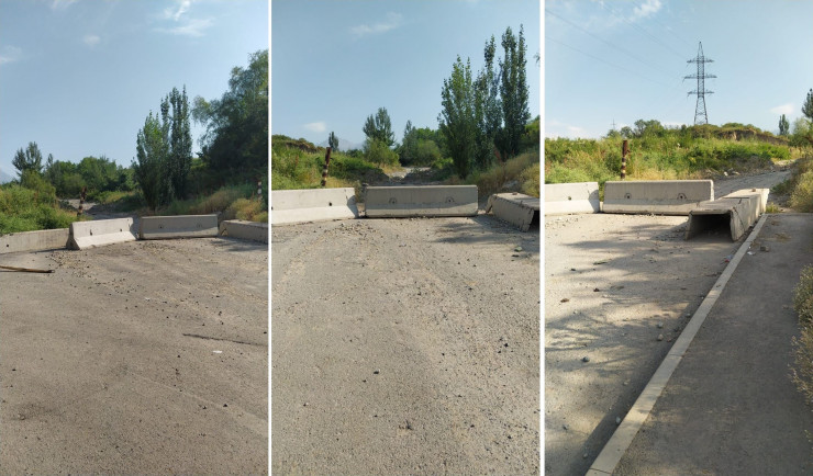 "Кто-то выставил бетонные плиты и выкопал арык, чтобы никто не смог ездить по этой дороге. Мы пошли разбираться в районный акимат, где сказали, что кто-то пожаловался на то, что по этой дороге постоянно ездят грузовики, поэтому и поставили плиты. Нас оказалось 33, хозяев, которых отрезали от пути к своим участкам", - объяснила ситуацию Омарова.