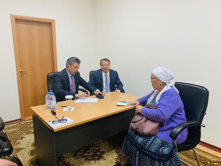 Позже Бердибек Сапарбаев, Бахыт Султанов и первый вице-министр индустрии и инфраструктурного развития Каирбек Ускенбаев начали совместный прием многодетных матерей.
