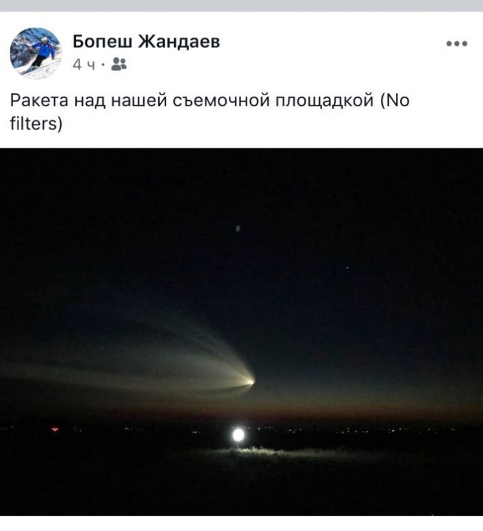 Полет ракеты засняли жители Алматы, передает Tengrinews.kz. Фотографиями горожане делятся в социальных сетях.