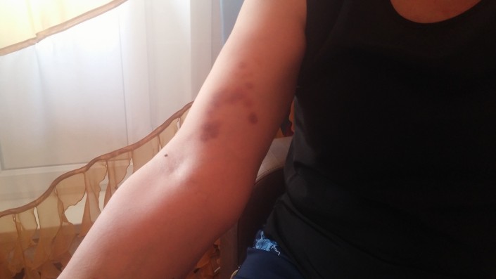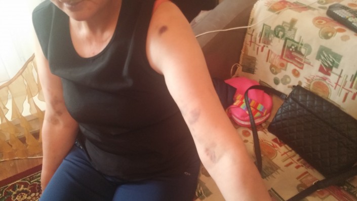 Мать пассажирки также сообщила, что в ходе драки водитель ее хватал за плечи и оставил несколько синяков. Кроме того, ближе к завершению конфликта к беременной женщине, с ее слов, подошел какой-то посторонний парень и приставил нож к животу с угрозами.