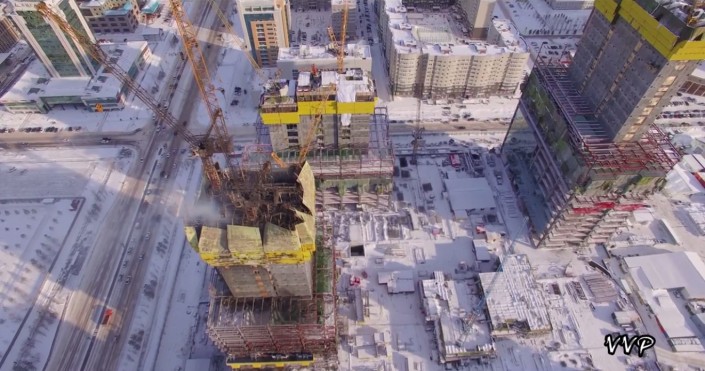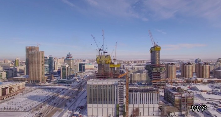 На канале Vit W на видеохостинге YouTube в субботу вечером появилось снятое беспилотником видео последствия крупного пожара в строящемся комплексе "Абу-Даби Плаза" в Астане.