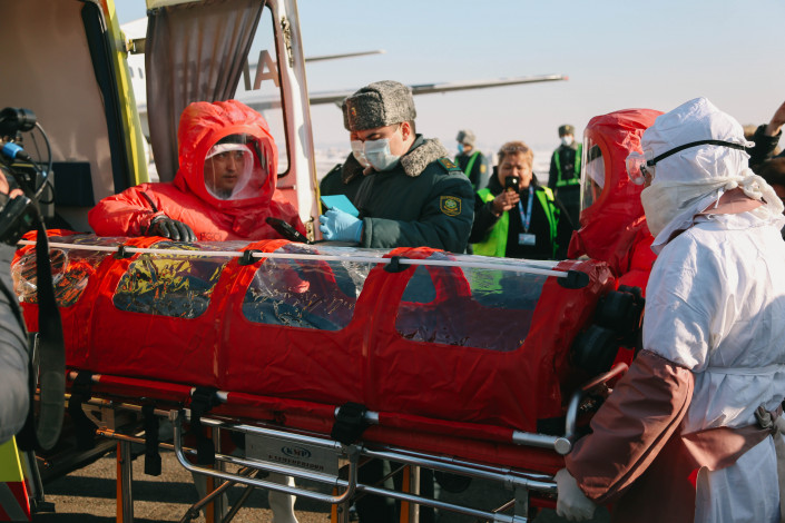 Из-за вспышки пневмонии в китайском Ухане в международном аэропорту Алматы провели учения. По легенде врачи-инфекционисты встретили "больных коронавирусом", передает Tengrinews.kz со ссылкой на пресс-службу Комитета контроля качества и безопасности товаров и услуг Министерства здравоохранения.
