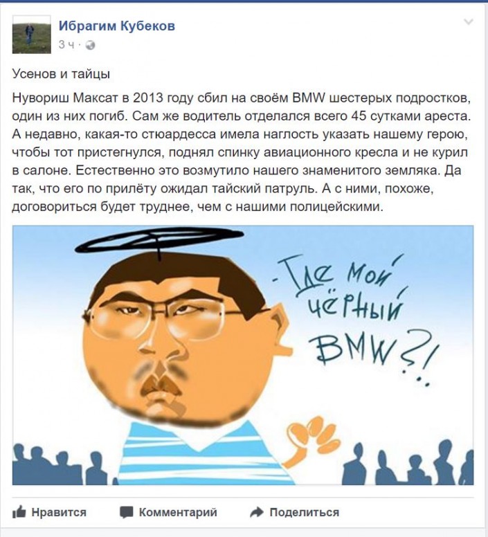 "Заусе́нец (рус.) - Максат Усенов, беспределящий за границей", - пишет в Twitter @RustamNazarov.