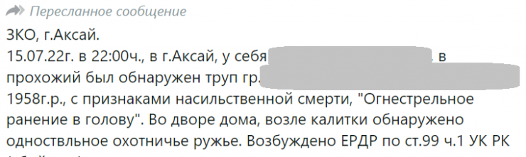 В местных чатах распространяется рассылка об убийстве бизнесмена, жителя Аксая. В сообщении говорится, что тело мужчины с признаками насильственной смерти нашли в доме.