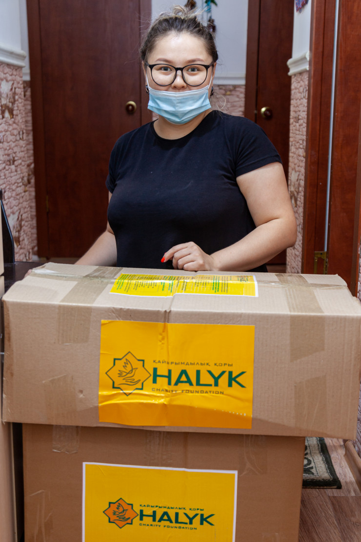 С момента введения режима чрезвычайного положения благотворительный фонд "Халык" проводит большую работу, направленную на борьбу и устранение последствий коронавирусной инфекции, оказывая помощь в виде безвозмездной передачи более 20 000 продуктовых наборов многодетным и малообеспеченным семьям, денежных выплат медицинским работникам и необходимого оборудования: аппараты ИВЛ, лаборатории ПЦР и машины скорой помощи. Общая сумма оказанной помощи - 5,5 миллиарда тенге.