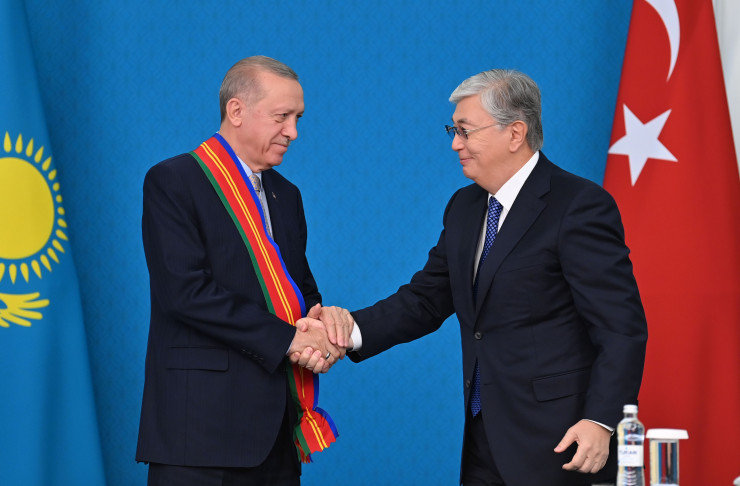 Президент Касым-Жомарт Токаев вручил лидеру Турции Реджепу Тайипу Эрдогану орден "Достық" І степени, передает корреспондент Tengrinews.kz.
