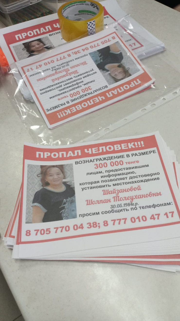 Родственники Шолпан Шайзановой просят всех, кто располагает какими-либо сведениями о ее местонахождении, позвонить по номеру: 8 705 770 04 38. За информацию, которая позволит найти женщину, обещано вознаграждение в размере 300 тысяч тенге.