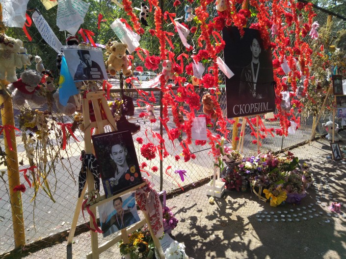 "До сих пор люди приходят, приносят свечи, цветы. Девочки молодые подолгу стоят, плачут. А что делать, как не плакать? Мы живем с этим горем, что потеряли такого мальчика, который нашей стране дал бы очень многое. Мы все гордились им, хотя не были с ним знакомы. Я каждый день прихожу сюда, сколько дней как он погиб, а я каждый день плачу..." - рассказывает жительница Алматы Бахытгуль Искенова.