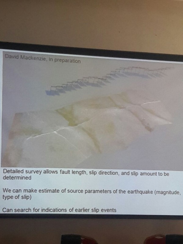 Он продемонстрировал собравшимся так называемый "Лепсинский разлом" недалеко от поселка Лепсы и гор Джунгарского Алатау. Сдвиг тектонических плит, по данным ученых, в этом случае составляет около десяти метров. "Когда произошло землетрясение, изменился канал реки Лепсы. Исследовав отложения в старом русле, нам удалось выяснить, что землетрясение произошло около 400 лет назад. Удивительно, но мы не видим никаких исторических записей о событии. Потенциально речь может идти о землетрясении 1716 года. В оригинальной исторической записи описаны разрушения в районе озер Балхаш и Зайсан, а также в городе Аксу в Китае. Но я не думаю, что это что-то, что мы можем сказать с абсолютной уверенностью", - пояснил ученый.