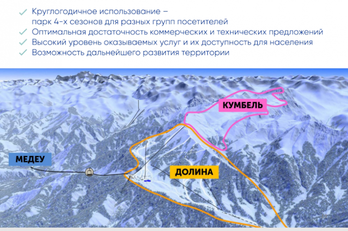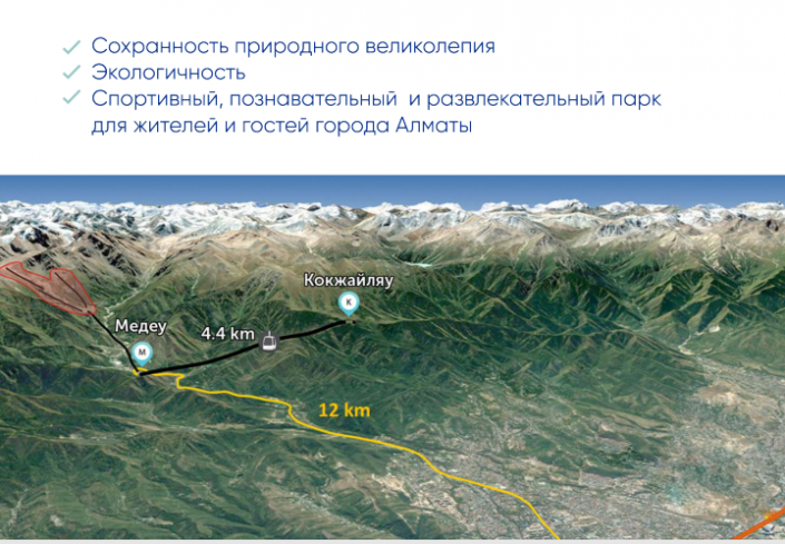 "Курорт "Кок-Жайляу" - это уникальная возможность создать первый в Казахстане горный всесезонный курорт по высшим международным стандартам, включив его в систему зеленых зон и парков города Алматы. Это место без доступа для автомобильного транспорта", - сказал генеральный директор Almaty Mountain Resorts Наиль Нуров.