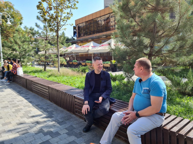 Алексей Пивоваров берет интервью у казахстанского журналиста Григория Беденко