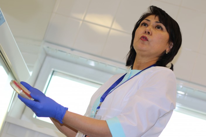 "В лаборатории Президентской клиники выявляют возбудителей, которые являются причиной заболевания: правильно определяют его вид, определяют правильно группу антибиотика, которую можно применять для лечения. Чтобы определить эти антибиотики, мы применяем несколько методов. Есть ручной метод, когда применяются диски с определенной концентрацией антибиотиков, и есть бактериологический анализатор. Наша лаборатория ежедневно может выполнить около 50-60 исследований", - пояснила Жанар Ибраева.