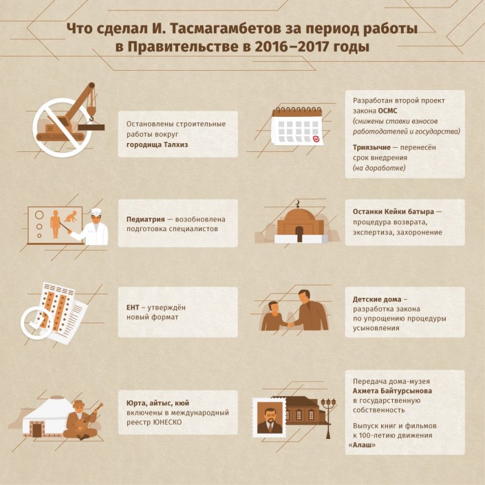 Напомним, 13 сентября 2016 года указом Президента РК Имангали Тасмагамбетов был назначен заместителем премьер-министра РК. 3 февраля этого года Тасмагамбетов был назначен послом РК в России. Нурсултан Назарбаев объяснил это назначение, отметив, что было учтено личное пожелание Тасмагамбетова "поработать на этой позиции и именно в Москве".
