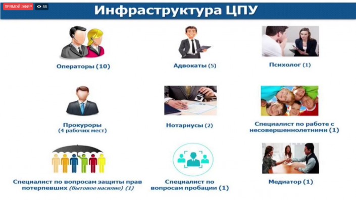 Работа Центра правоохранительных услуг напоминает принцип работы Центров обслуживания населения. При входе посетители попадают на ресепшен, где могут проконсультироваться по эксплуатации центра. Далее граждане обращаются со своими проблемами к операторам, которые направляют их к прокурорам, адвокатам, медиаторам или другим специалистам.