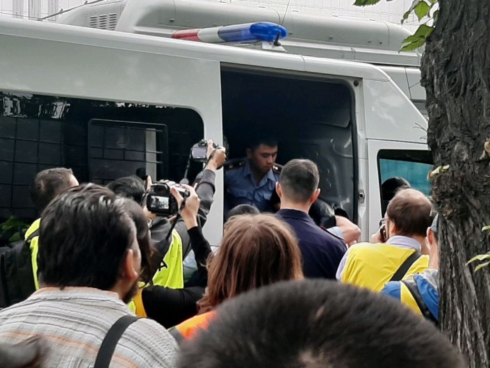 В центре Алматы задержали несколько человек за призывы к митингам, которые инициировал Аблязов. Его сторонники планировали заблокировать автомобильное движение, передает корреспондент Tengrinews.kz с места событий.