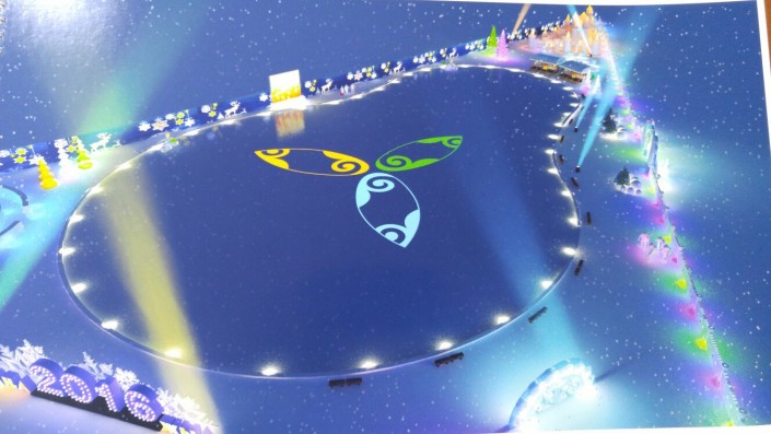 Логотип "Астана Экспо-2017" можно будет увидеть на катке. Одновременно  на катке смогут покататься около 400 человек. Тема предстоящей выставки EXPO-2017 будет присутствовать в оформлении всех ледовых городков.