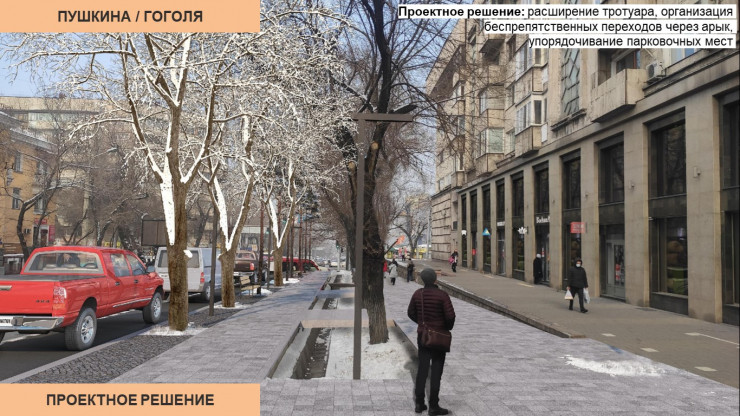 Основной концепцией улицы Пушкина станет реорганизация дорожной сети. На пересечении улицы Пушкина ниже улицы Макатаева появится новая городская площадь, которая может служить местом отдыха и встреч горожан.