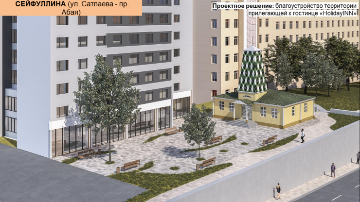 В акимате сообщили, что по проспекту Сейфуллина будут разработаны проектные решения с минимальным вмешательством в проезжую часть, основной акцент будет сделан на благоустройство тротуаров, применение дизайн-кода города к фасадам уличного фронта.